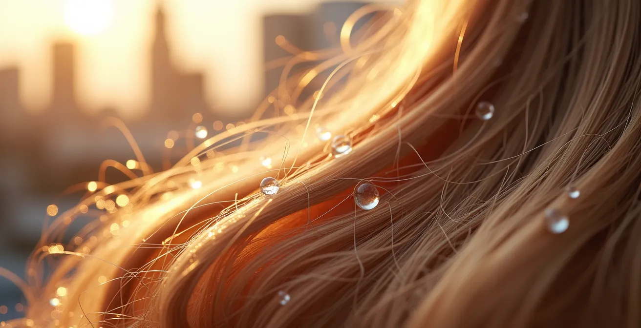 Die meisten Ratgeber werfen mit oberflächlichen Tipps um sich: „Benutz ein Feuchtigkeitsshampoo!“ oder „Mach wöchentlich eine Kur!“. Das ist, als würde man ein Pflaster auf eine Wunde kleben, ohne sie vorher zu reinigen. Wir gehen heute tiefer. Wir sprechen nicht über Produkte, sondern über eine Philosophie. Die Ursache für deine Haarprobleme liegt oft unsichtbar in den Rohren deiner Altbauwohnung: Kalk. Hartes Wasser ist der stille Saboteur, der die Wirkung selbst der besten Pflegeprodukte zunichtemacht und dein Haar von innen heraus schwächt.