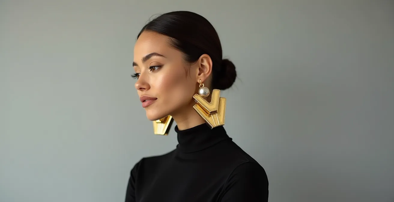 Die Faszination für großen, architektonischen Schmuck ist ungebrochen. Für Frauen mit einem Sinn für klare, grafische Ästhetik sind diese Stücke mehr als nur Accessoires – sie sind tragbare Skulpturen, ein Statement für Designbewusstsein. Doch oft schwingt eine Unsicherheit mit: die Angst, dass der Look überladen, zu schwer oder gar erdrückend wirken könnte. Die gängigen Ratschläge – das Haar zurückzubinden oder den Rest des Outfits schlicht zu halten – kratzen nur an der Oberfläche eines weitaus tieferen Prinzips. Man betrachtet verwandte Bereiche wie kunstvolle Nageldesigns oder sogar gemmologische Verzierungen an Zähnen und erkennt, dass die Dekoration des Körpers immer eine Frage der Proportion ist.