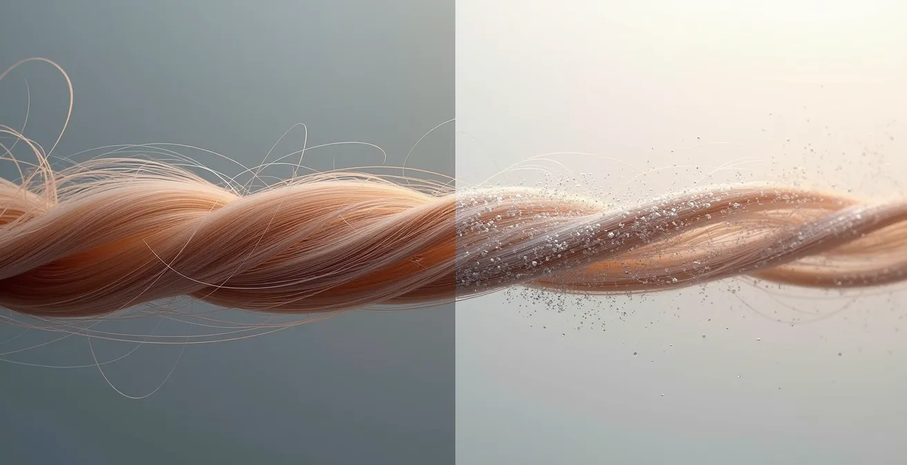 Dieser Artikel bricht mit dem Mythos der reinen Feuchtigkeitspflege. Stattdessen erhalten Sie einen wissenschaftlich fundierten Leitfaden, um eine präzise Eigendiagnose zu stellen. Wir werden die Porosität Ihres Haares testen, den fundamentalen Unterschied zwischen Spliss und Haarbruch analysieren und die Gesundheit Ihrer Kopfhaut als Basis für alles Weitere untersuchen. Nur wenn Sie die wahre Ursache kennen, können Sie die richtige Entscheidung treffen: pflegen oder schneiden.